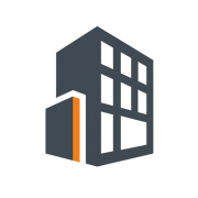 Contemporary urban facade with orange accent panels